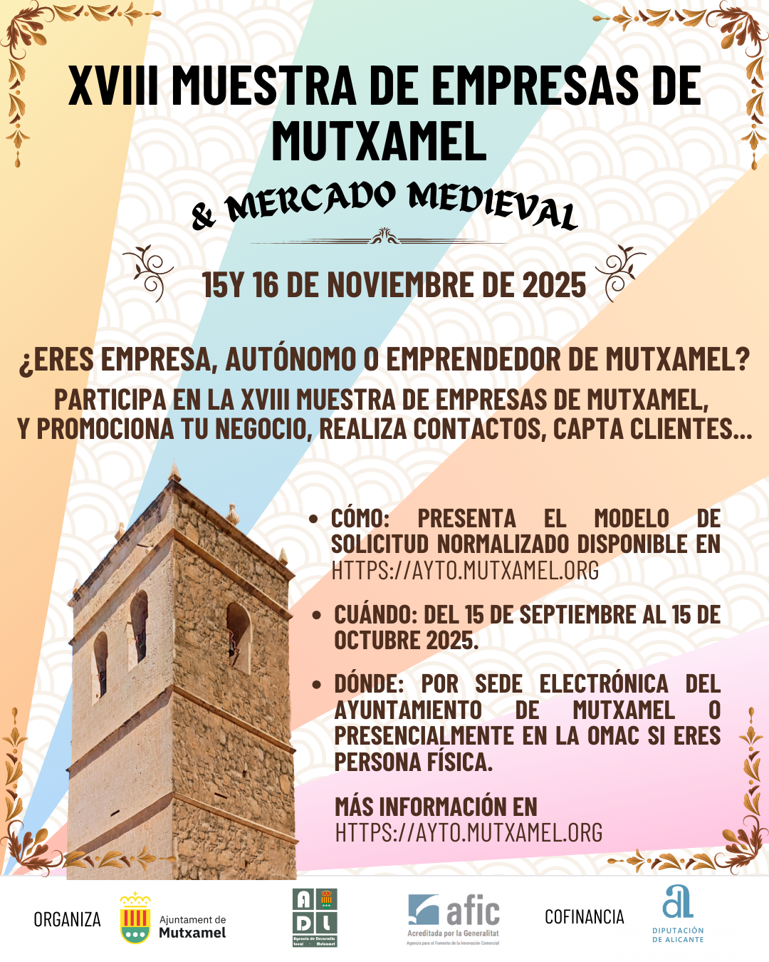 La XVIII edición de la Muestra de Empresas, tendrá lugar durante el sábado y domingo 15 y 16 de noviembre 2025 e irá acompañada de un Mercado Medieval. El recinto de exposición de stands se localizará en torno a la Plaça Nova y calle Felipe Antón hasta el cruce de la C/ La Pau.