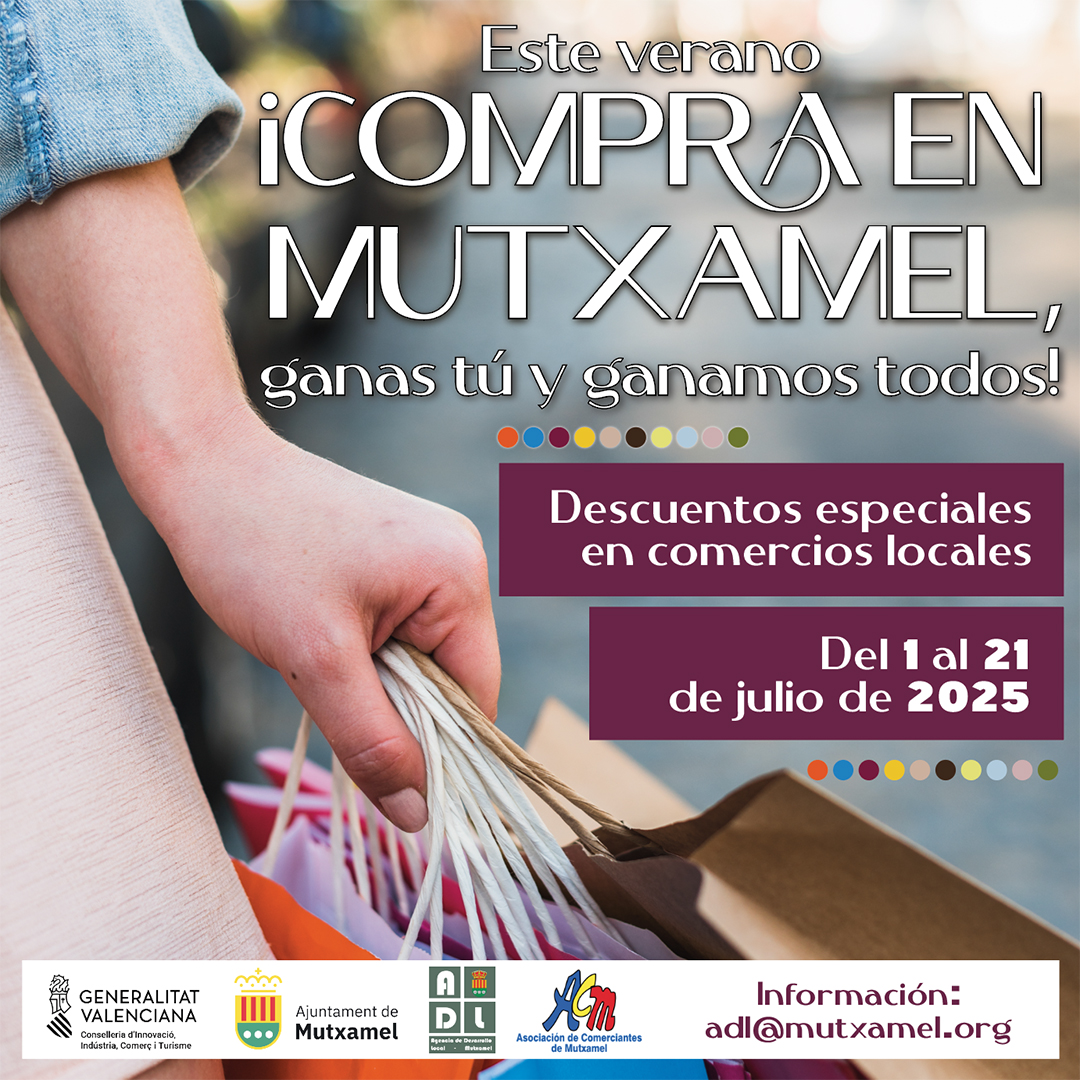 Este verano, ¡COMPRA EN MUTXAMEL, GANAS TÚ Y GANAMOS TODOS!