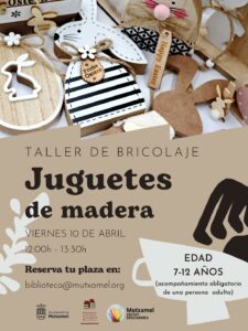 El 10 de abril, a las 12:00 h, disfrutaremos de una mañana increíble en la Biblioteca Infantil. Cola de Ratón nos trae este divertido taller donde construiremos nuestros propios juguetes con piezas de madera para disfrutar del trabajo artesanal y sacar nuestro lado mas creativo. La actividad está dirigida a personas de entre 7-12 años, que deberán ir acompañadas por un adulto. El taller tiene una duración de una hora y media.