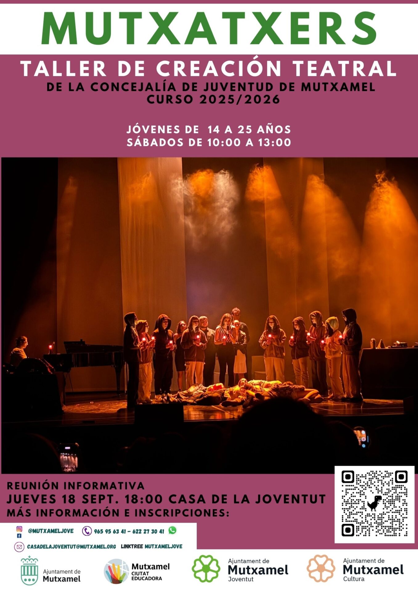 Inscríbete escaneando el código QR o en linktr.ee/mutxameljove