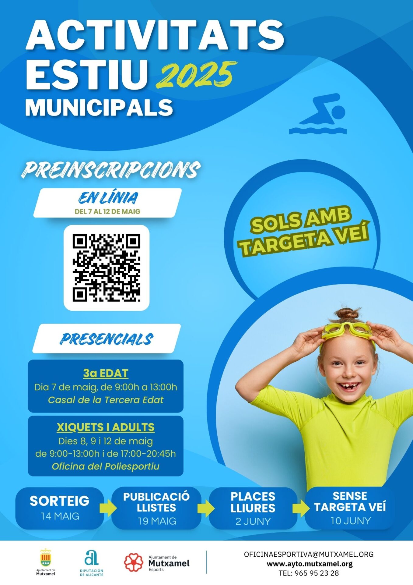 S’aproxima l’estiu i amb ell, les Activitats Esportives Municipals d’Estiu 2025, organitzades per l’Ajuntament de Mutxamel. Esta edició comptarà amb una àmplia programació dirigida a tots els públics, des de la infància fins a la tercera edat, amb opcions variades per a gaudir de l’esport durant l’època estival.