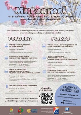La Regidoria de Turisme de l’Ajuntament de Mutxamel et convida a gaudir d’una completa programació de visites guiades i visites teatralitzades durant els mesos de febrer i març de 2026. Una proposta pensada per a passejar, descobrir i gaudir en família, recorrent alguns dels espais més emblemàtics del municipi.