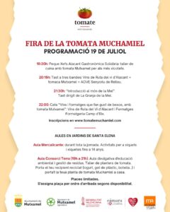 Els dies 18 i 19 de juliol des de les 19:30 fins a les 23:30h en la Plaça Sant Roc teniu una cita amb la Tomata Muchamiel, també es podran gaudir dels Jardins de Santa Elena declarats BIC.