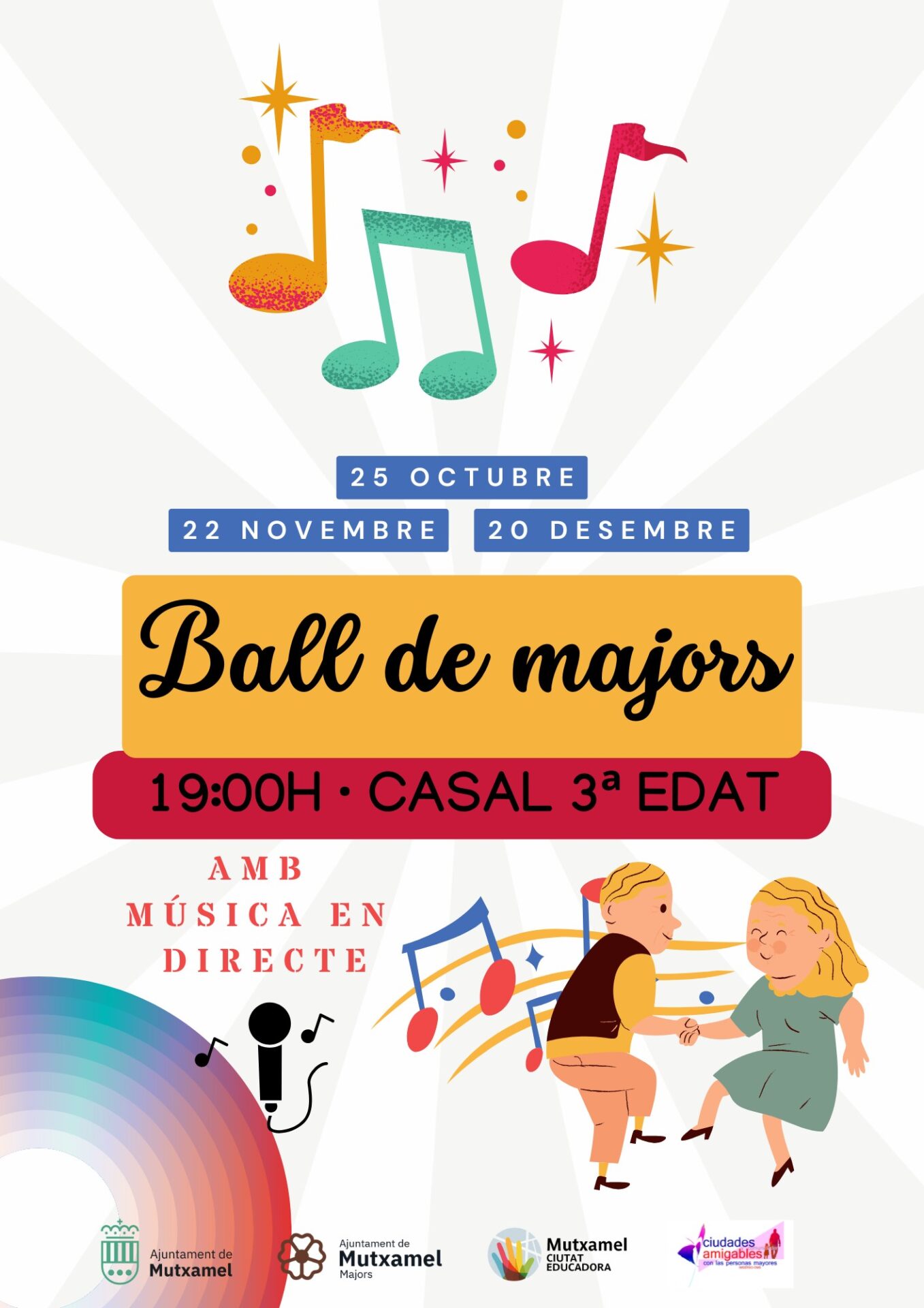 Continuem gaudint de les vesprades de música i diversió. Tens una nova cita amb el Ball de Majors amb DJ en el Casal de la Tercera Edat.