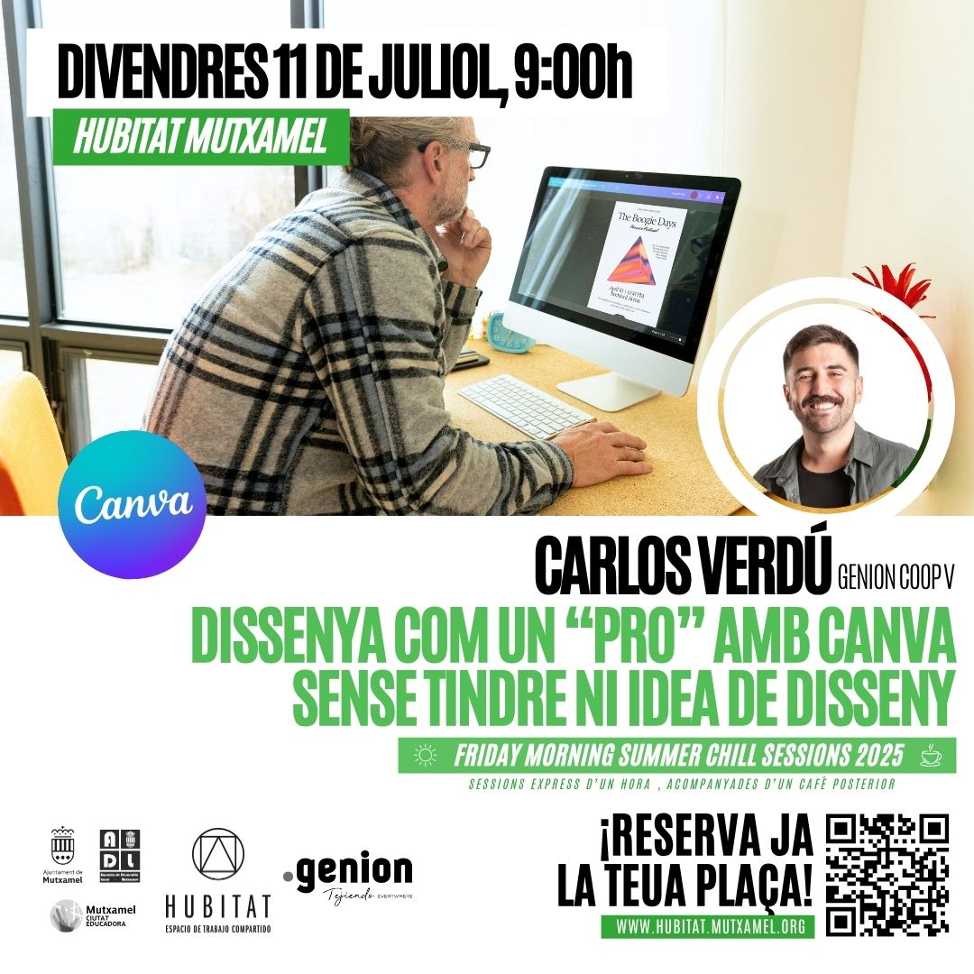 • Enllaç d’inscripció: https://hubitat.mutxamel.org/events/friday-morning-summer-coffee-sessions-los-secretos-de-canva-para-disenar-como-un-pro-sin-tener-ni-idea/