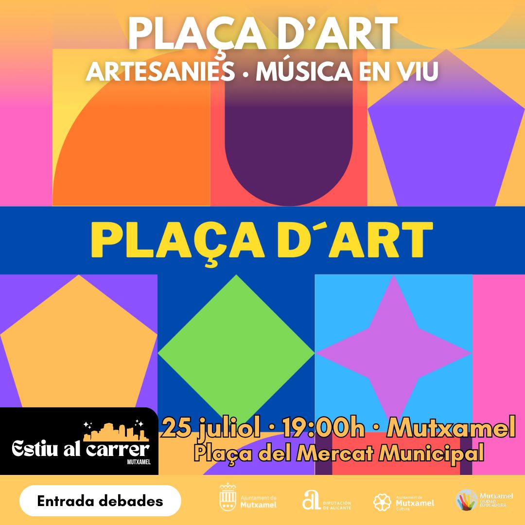 En el marc del programa cultural d’estiu L’Estiu a Mutxamel, i dins del cicle Estiu al Carrer, l’Ajuntament de Mutxamel organitza una nova edició de Plaça d’Art, una cita oberta a la creativitat, l’artesania i la música en directe.