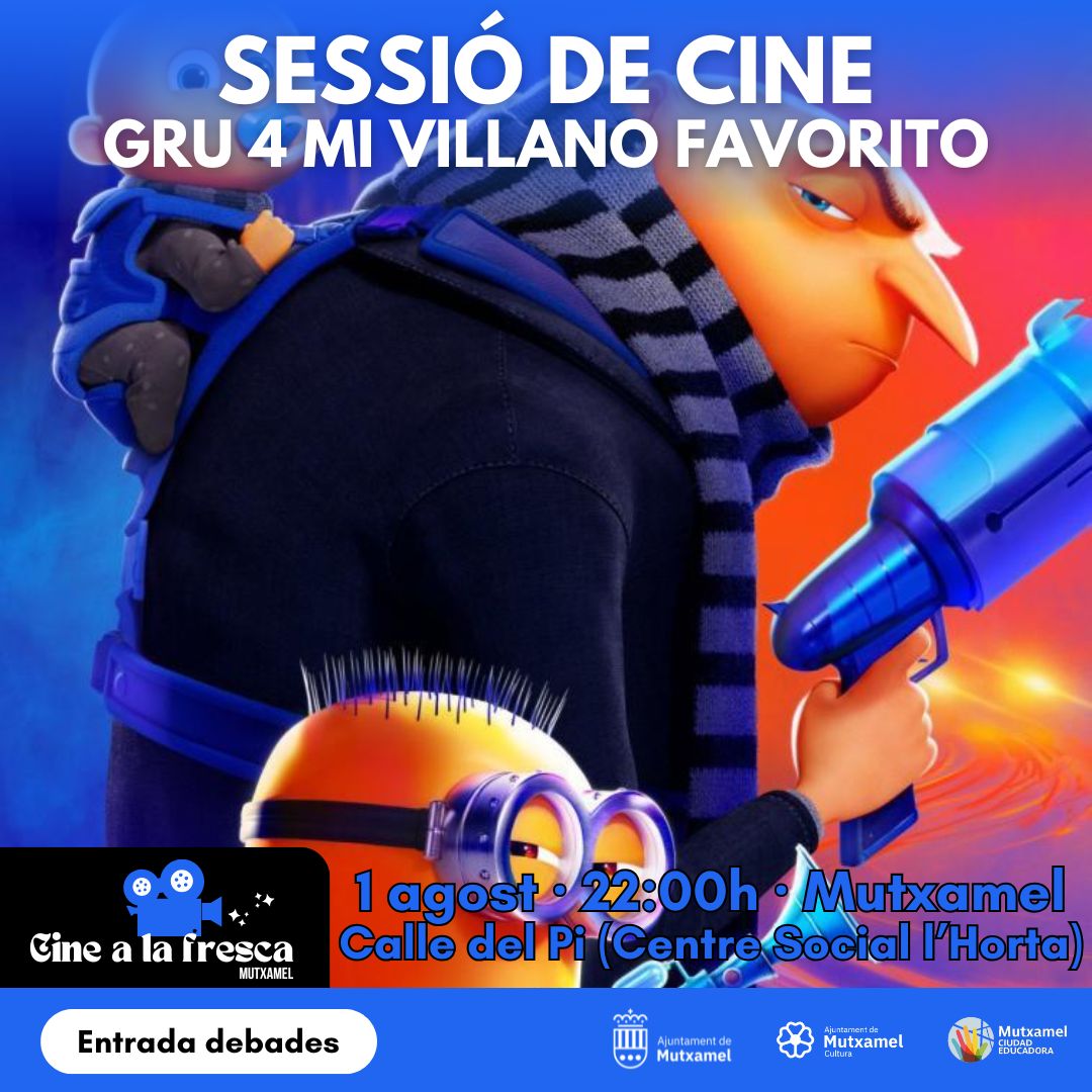 En el marc de la programació cultural d’estiu L’Estiu a Mutxamel, i dins del cicle Cine a la fresca, l’Ajuntament de Mutxamel organitza una nova sessió de cinema a l’aire lliure amb la projecció de la pel·lícula Gru 4: El meu vilà favorit.