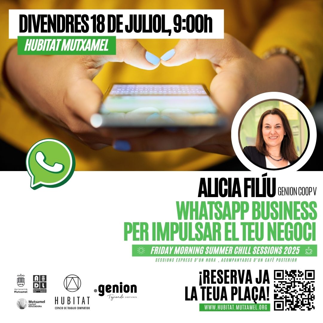 • Enllaç d’inscripció: https://hubitat.mutxamel.org/events/friday-morning-summer-coffee-sessions-whatsapp-business-como-aliado-para-darle-cana-a-tu-negocio/