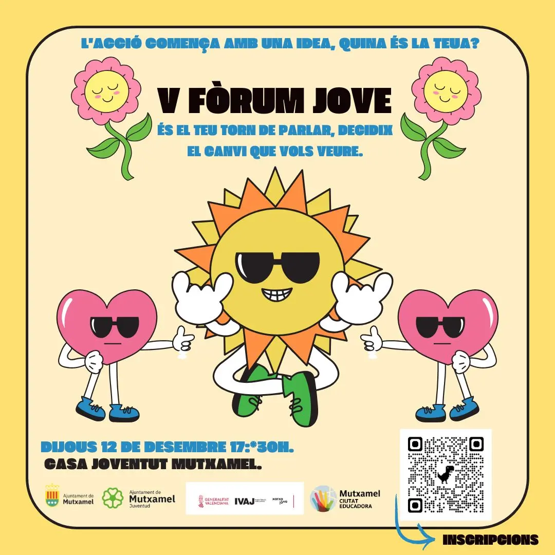 La Casa de la Joventut de Mutxamel es va convertir dijous passat 12 en l’epicentre de la participació juvenil amb la celebració del V Fòrum Jove, un esdeveniment que va reafirmar el compromís del municipi amb la seua joventut activa i creativa. Sota els lemes “L’acció comença amb una idea, quina és la teua?” i “És el teu torn de parlar, decidix el canvi que vols veure”, la jornada va reunir joves, associacions i col·lectius que, junts i juntes, treballen per a construir un Mutxamel més inclusiu, innovador i adaptat a les necessitats de les noves generacions.