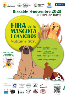 La regidoria de Sostenibilitat Ambiental i Protecció Animal de l’Ajuntament de Mutxamel organitza el pròxim 8 de novembre la “FIRA DE LA MASCOTA DE MUTXAMEL”, l’objectiu fonamental de la qual és conscienciar els propietaris d’animals domèstics sobre les responsabilitats que van implícites en la tinença d’animals.