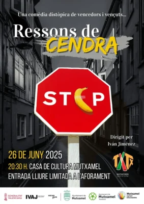 El pròxim 26 de juny de 2025, a les 20.30 h, l’escenari de la Casa de Cultura de Mutxamel s’omplirà de talent jove amb l’estrena de “Ressons de Cendra”, l’esperada obra final del curs del grup de creació teatral Mutxatxers, en col·laboració amb la Casa de la Joventut. L’entrada serà lliure fins a completar aforament, i està dirigida a tots els públics.