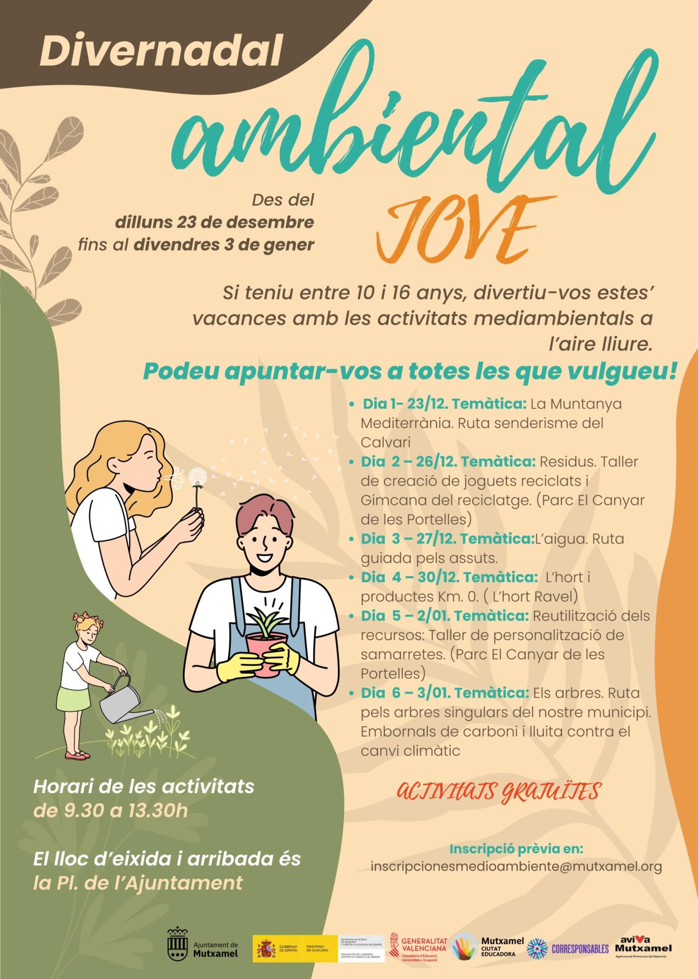 Volem aprofitar la màgia d’estes festes per a reunir els xic i les xiques d’entre 10 i 16 anys del municipi per a fer activitats divertides en comunitat. Si vols participar en este Divernadal Ambiental, aprendre sobre Mutxamel a través de les rutes, participar en els tallers i aprendre en l’hort municipal, no et pots perdre esta oportunitat.