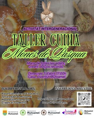 La cita tindrà lloc dimecres que ve 1 d’abril de 2026, a les #17:00 hores, a la Casa de la Joventut de Mutxamel, que es convertirà per unes hores en un espai de trobada on l’experiència i la curiositat es donaran la mà. Majors i joves compartiran receptes, trucs i records mentre elaboren les tradicionals boniques, un dolç típic que forma part del patrimoni gastronòmic i emocional de moltes famílies.