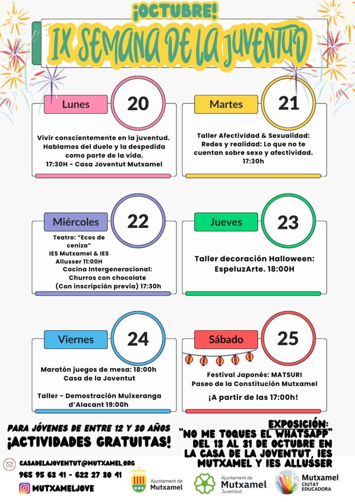 Mutxamel celebra la IX Semana de la Juventud con talleres, teatro, juegos, cultura y un festival japonés