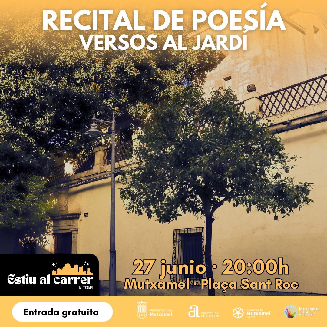 Dentro de la programación cultural L’Estiu a Mutxamel, este verano arranca con una propuesta literaria muy especial: el recital de poesía «Versos al Jardí», un encuentro para disfrutar de la palabra y la emoción poética en un espacio íntimo y acogedor.