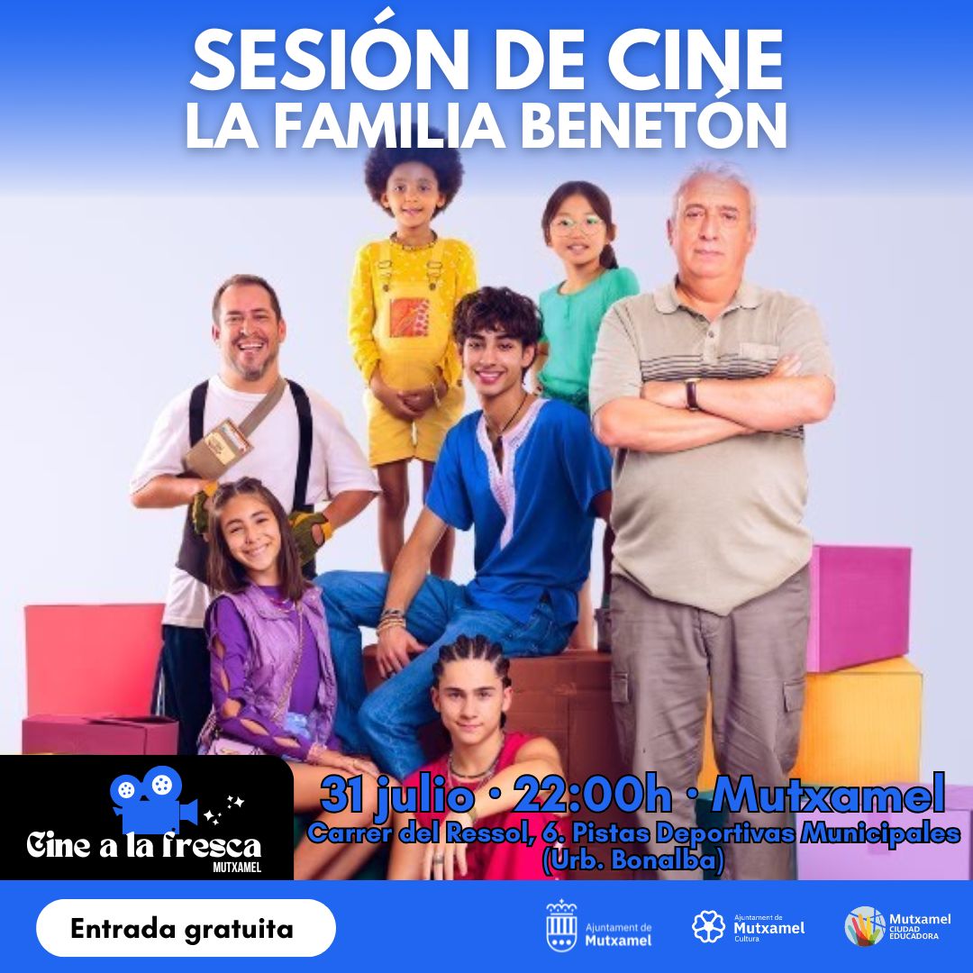 Dentro de la programación cultural de verano L’Estiu a Mutxamel, y en el marco del ciclo Cine a la fresca, el Ayuntamiento de Mutxamel organiza una nueva sesión de cine al aire libre con la proyección de la película La familia Benetón.