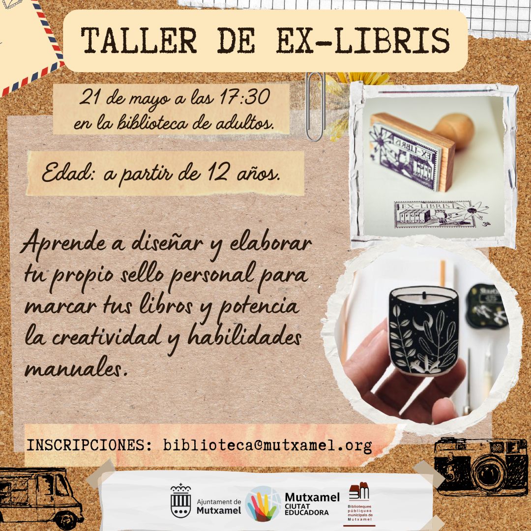 Presentamos una actividad nueva que esta vez tendrá lugar en la biblioteca de adultos. Se trata de un taller de Ex-Libris, es decir, una actividad encaminada a realizar nuestro propio sello personalizado para poder marcar libros o cualquier otro objeto. Aquí dejamos todos los detalles: