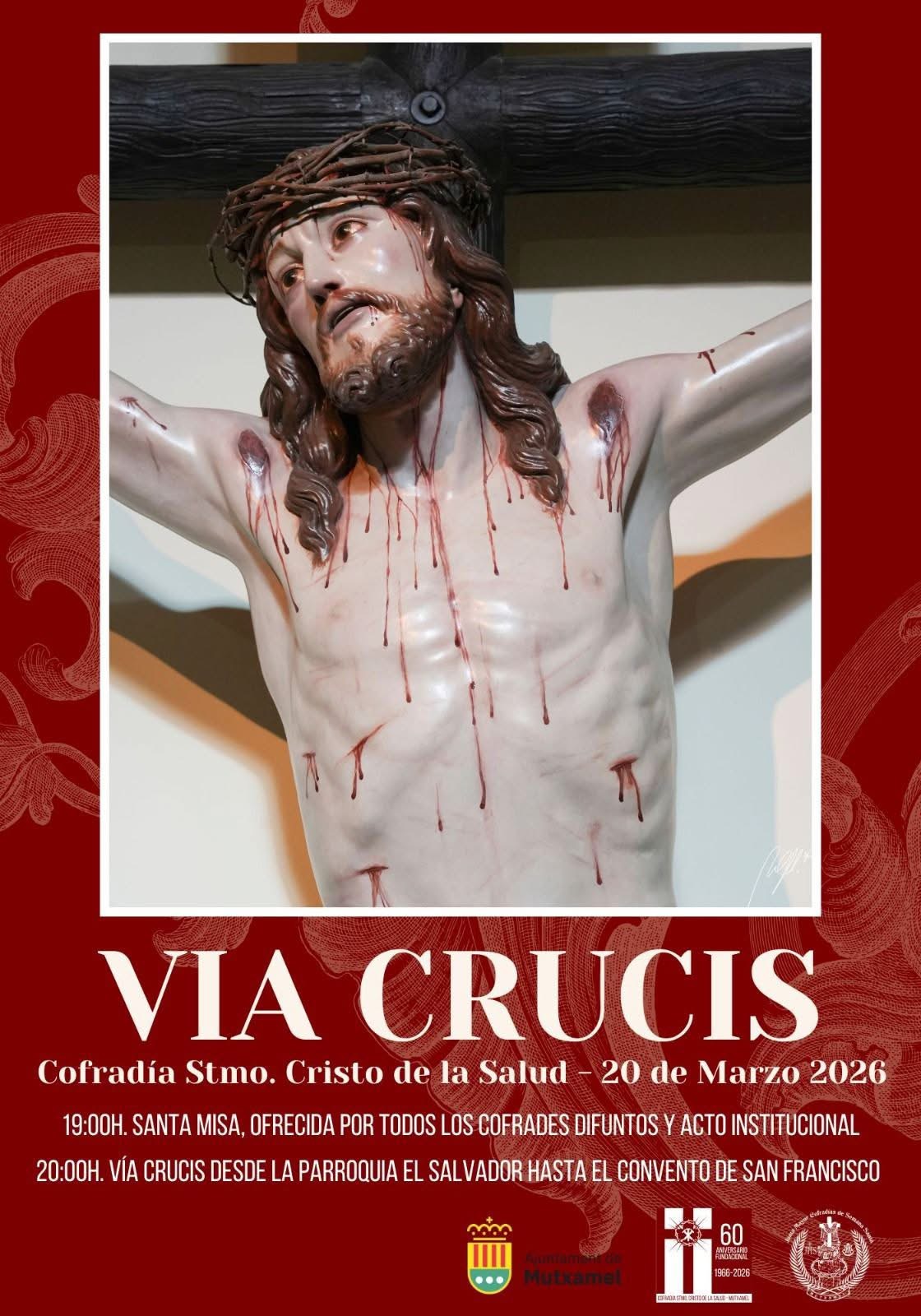 Con motivo del 60 aniversario de la Cofradía del Santísimo Cristo de la Salud, Mutxamel acogerá un Vía Crucis extraordinario el próximo 20 de marzo de 2026.