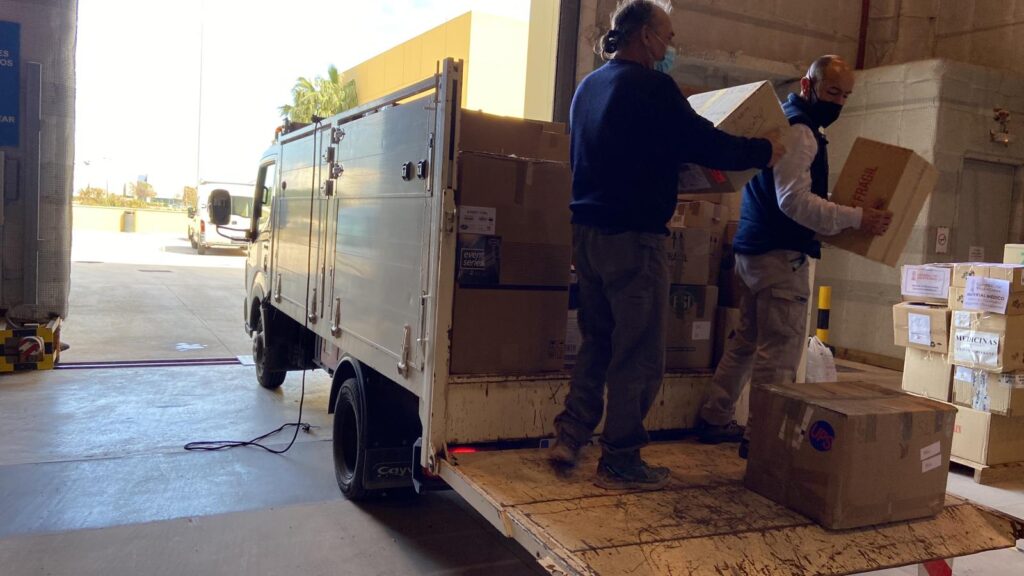 Todos esos paquetes han salido a media mañana de la Casa de Cultura y se han descargado en las naves del antiguo complejo audiovisual de la Ciudad de la Luz, donde la Generalitat está realizando todo el acopio de material de primera necesidad, que lo antes sea posible será trasladado en convoyes solidarios a Ucrania.