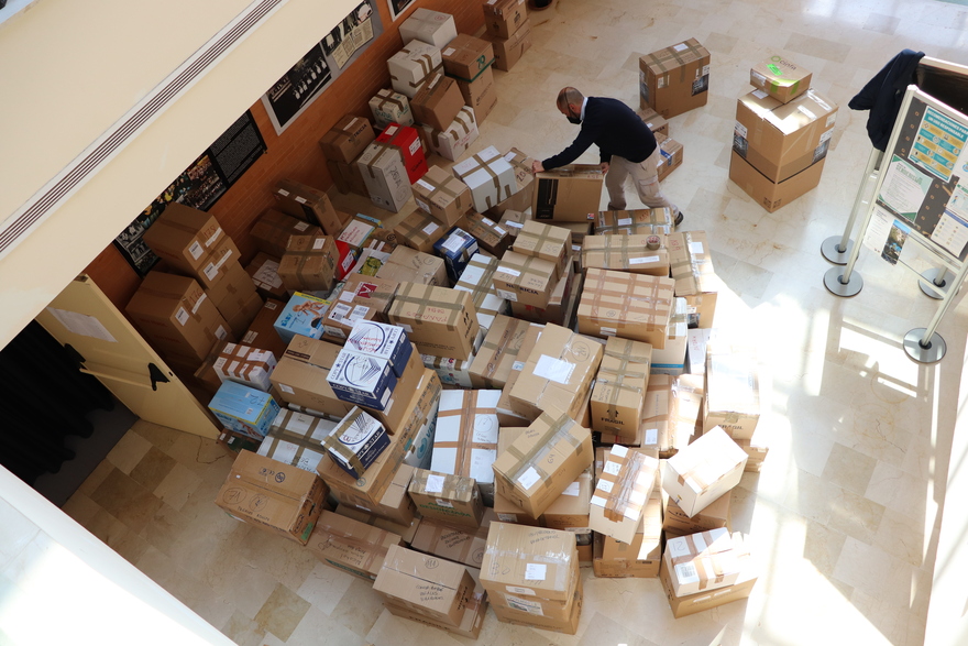 Mutxamel ha conseguido recoger en unas semanas varios miles de kilos de material sanitario básico de primera necesidad, así como productos destinados al cuidado de menores, como pañales, leche en polvo para bebés y medicamentos en dosis infantiles. Después de días de recogida, almacenamiento y organización, tareas en las que han colaborado personal del Ayuntamiento de Mutxamel, así como vecinos voluntarios, se han conseguido empaquetar más de 200 cajas (en concreto, 211), cada una de ellas etiquetada convenientemente según el tipo de productos que se guarda en su interior. Etiquetas numeradas e, incluso, en dos idiomas, castellano e inglés, para facilitar su distribución posterior entre las víctimas de la guerra provocada por Rusia al invadir Ucrania.