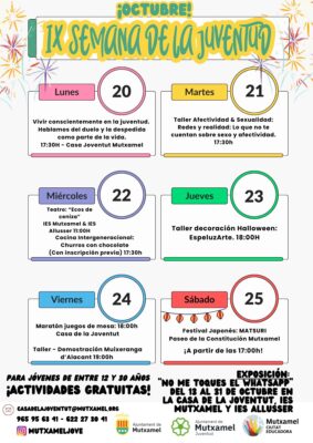 Más info…Del 20 al 25 de octubre, la Casa de la Joventut de Mutxamel volverá a ser el punto de encuentro de la juventud del…